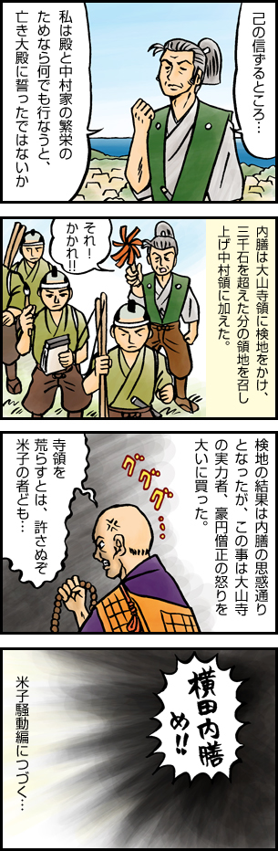 内膳はその石高に着目し検地を行なう正当な理由としました。